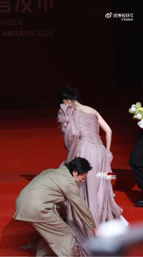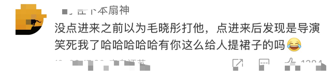 在过程中,张彬彬看到毛晓彤裙子过长,于是伸手帮忙提起裙摆,没想到因为动作幅度过大险些引发走光,被一旁的导演李木戈看到后火速“打手”提醒。