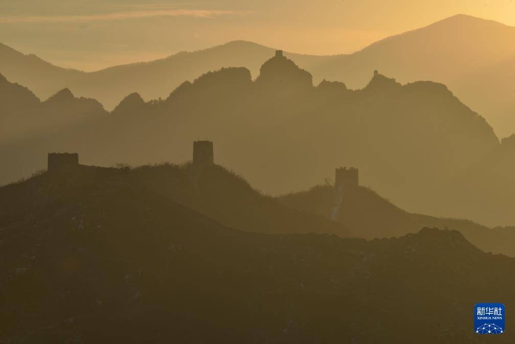 这是12月16日拍摄的河北省承德市滦平县金山岭长城晨景。