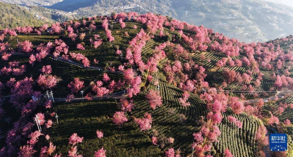 12月16日在云南省南涧县无量山樱花谷内拍摄的冬樱(无人机照片)。