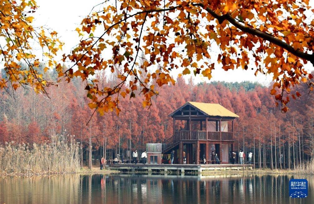 12月17日,游客在江苏苏州虎丘湿地公园赏景游玩。
