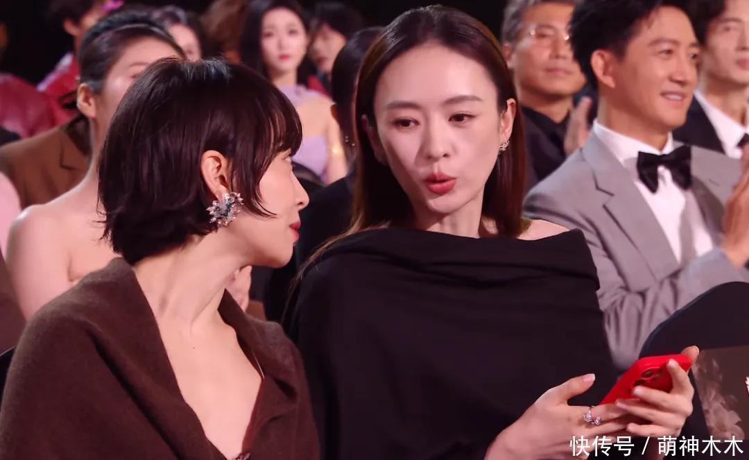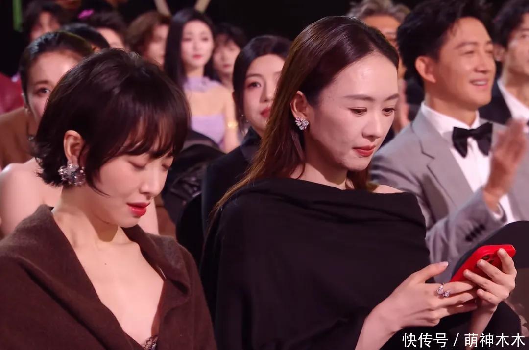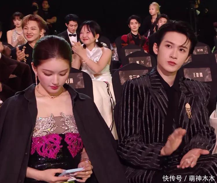 张凌赫上台领奖,白鹿直接低头玩起手机,似乎也很怕导播乱切。
