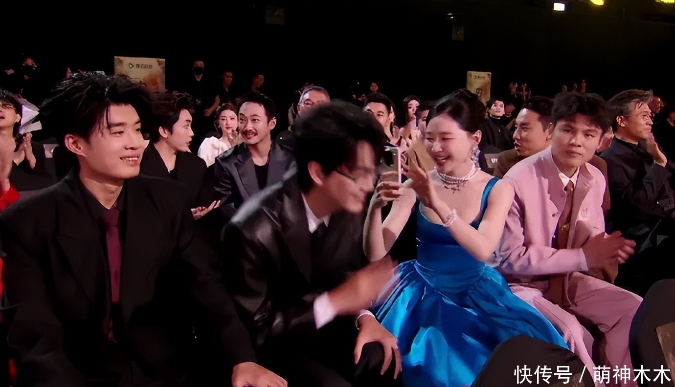 本来星光大赏就很像开年会,何广智、张呈、雷淞然获奖之后,金靖和徐志胜直接掏出手机拍照,脸上全是对熟人获奖的兴奋,后面徐志胜和金靖还串座去了汪苏泷旁边,真有公司年会那味儿了!