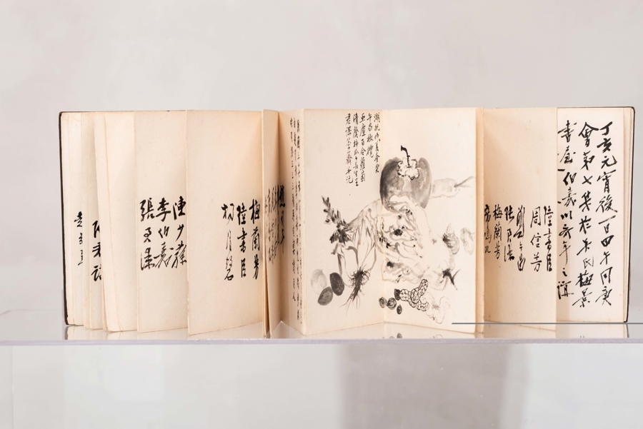 在众多周信芳生前的手稿、戏服、戏单、老唱片等历史文物中,他曾穿用过的《徐策跑城》改良蟒、麒麟开氅以及曾随其历经风雨的移风社衣箱等藏品都是首次公开展出。《甲午同庚纪念册》和《正气集》极具历史、艺术价值,如同一把把钥匙引领观众打开历史之门,更为直观地感知大师的艺术追求与人格魅力。